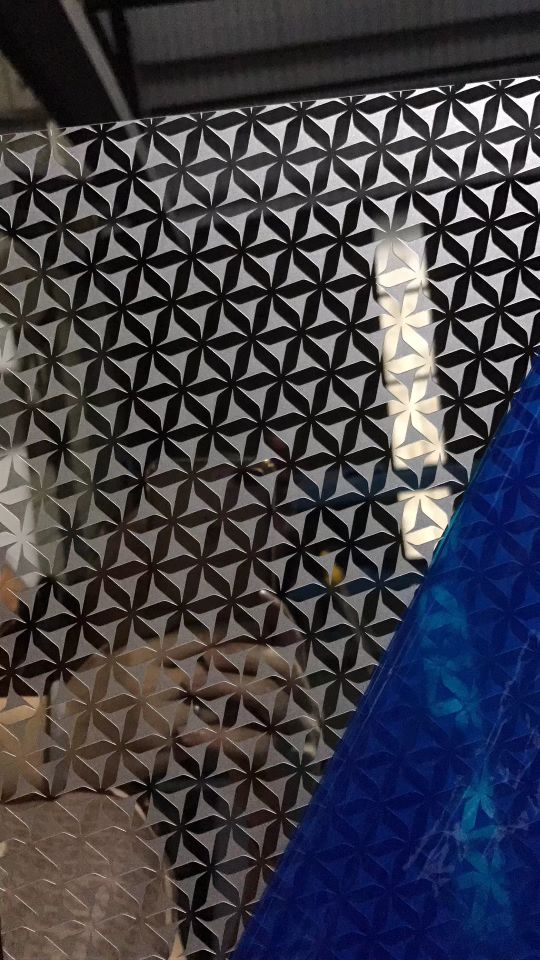 不銹鋼花紋板分兩大類:一類是鋼廠在生產(chǎn)不銹鋼時通過軋機(jī)軋制而成的,這類產(chǎn)品主要厚度在3-6mm左右,是熱軋后退火酸洗裝狀態(tài),其工藝過程如下:不銹鋼坯→熱連軋機(jī)軋制黑卷→熱退火和酸洗線→平整機(jī)、拉矯機(jī)、拋光線→橫切線→熱軋不銹鋼花紋板
