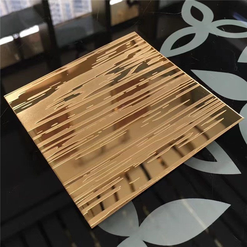 不銹鋼蝕刻板是在不銹鋼表面通過(guò)化學(xué)的方法,腐蝕出各種花紋圖案。以8K鏡面板、拉絲板、噴砂板為底板,進(jìn)行蝕刻處理后,對(duì)物體表面再進(jìn)行深加工,不銹鋼蝕刻板可進(jìn)行局部的和紋,拉絲,嵌金,局部鈦金等各式復(fù)雜工藝處理,不銹鋼蝕刻板實(shí)現(xiàn)圖案明暗相間,色彩絢麗的效果。
